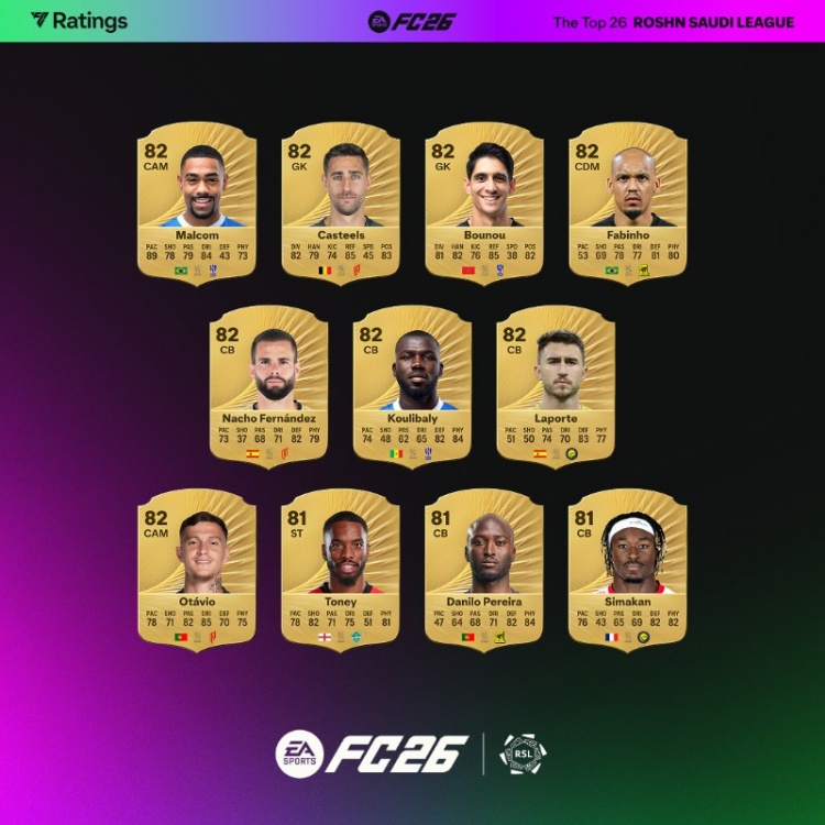 9月10日讯 EA SPORTS官方列FC26沙特联球员评分,C罗、本泽马、坎特、伊尼戈85分最高。
